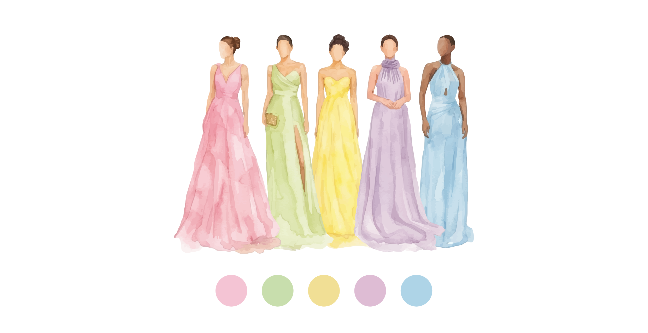 escolham seu vestido longo no modelo de sua preferência, e usem cores em tons pastel.